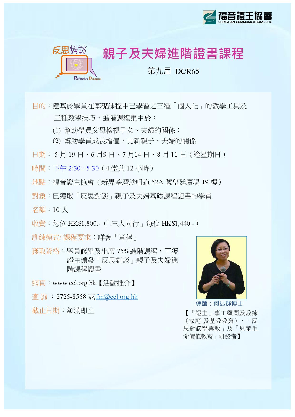 「反思對談」親子及夫婦進階證書課程(第九屆 DCR65)